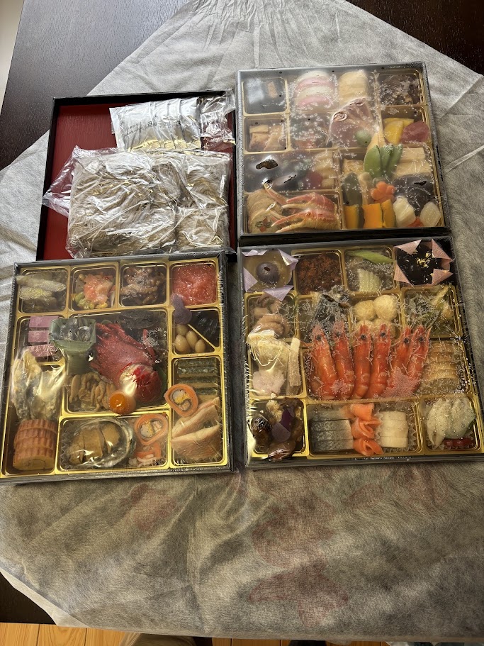 開けてみると、おせちに加え、なぜかお蕎麦も入っていました(これはプレゼントか何かかな?)